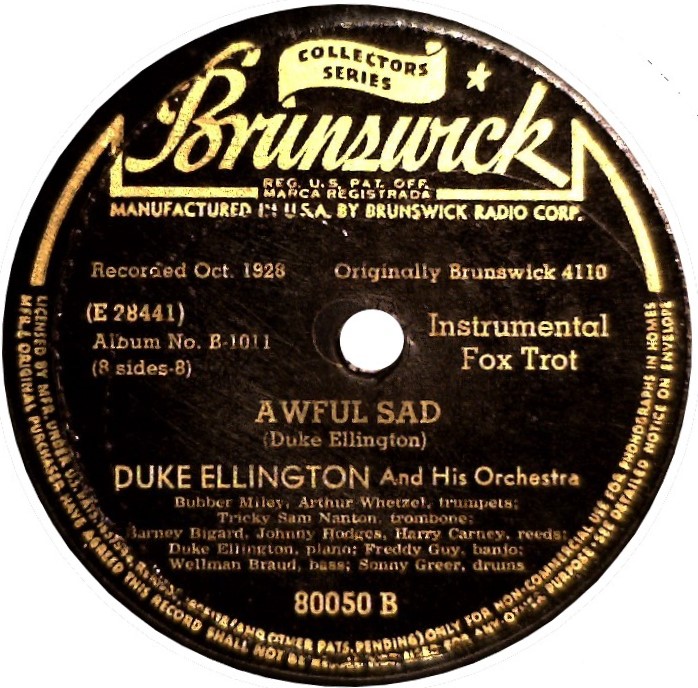 This early mood piece precedes by two years the more famous Mood Indigo (for which the genre was named). A mood piece is slow, not a ballad, not a blues, but gentle and contemplative. Ellington introduced many of these over the years. This is one of the first. Awful Sad didn’t have a long life, but its deep structure and techniques that will effect future compositions and arrangements demand our attention.